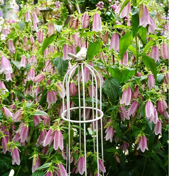 • Уникален външен вид – Камбанка цвете с деликатни сърцевидни листа и тръбовидни камбанковидни цветове в кремаво бяло до нежно розово, с червени петна и фини власинки. Придава елегантност на всяка градина.